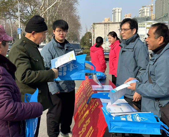 2月27日上午,第62个“学雷锋纪念日”前夕,淮北市水务集团李子明供水先锋党员志愿者服务队在翡翠岛社区南门广场开展志愿服务活动,现场接受居民供水咨询,并提供免费供水维修服务。